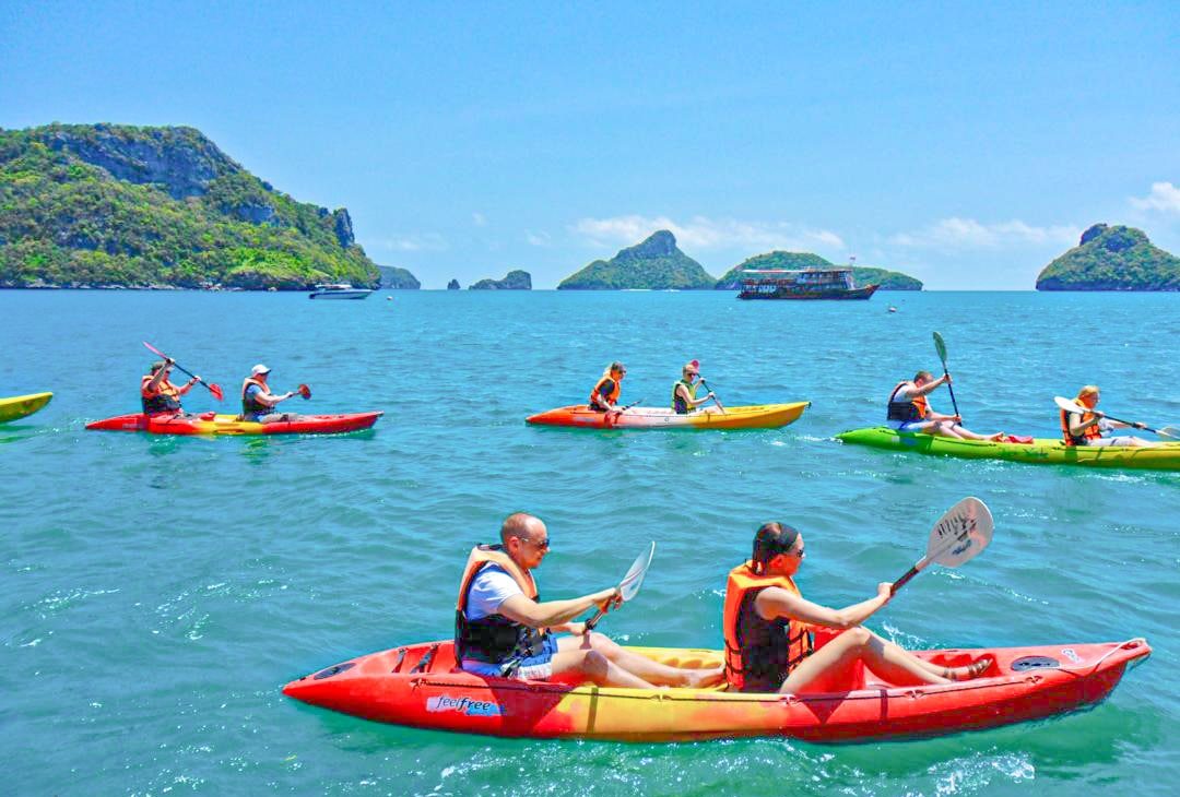 La tarde se reserva para una ruta en kayak entre acantilados y calas escondidas del Parque Nacional de Mu Ko Ang Thong. Esta actividad combina aventura y tranquilidad, remando en medio de paisajes impresionantes.