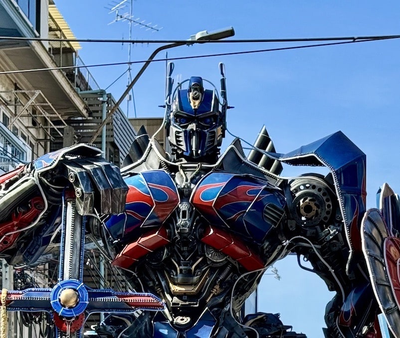 La primera visita del recorrido será la impresionante estatua de robot en el medio de la calle, personaje que se impone como parte del arte del barrio de Talat Noi y una representación de los contrastes y maravillas del distrito.