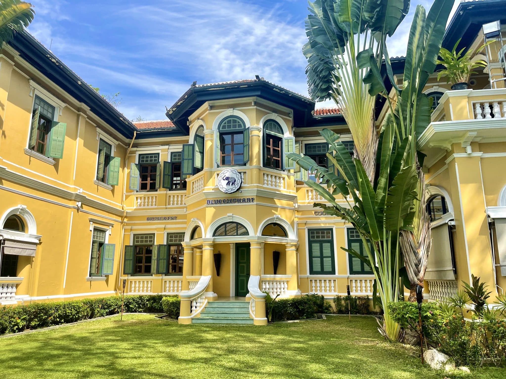 Seguiremos el recorrido visitando desde fuera la antigua casa de arquitectura sino-portuguesa del Gobernador, conocida como Phra Pitak Chinpracha, exquisitamente restaurada y situada en el centro histórico de Phuket Town. Esta casa con sus elegantes arcos y detalles ornamentales, es un testimonio viviente de la rica herencia cultural y la historia colonial de la región. Visitantes y locales son atraídos por su belleza arquitectónica, que refleja una época pasada donde las influencias chinas y portuguesas se entrelazaban armoniosamente. Explorando sus interiores, se puede apreciar la meticulosa restauración que conserva la autenticidad y el encanto de esta joya arquitectónica de Phuket.